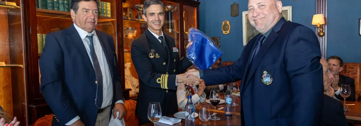 Miguel Vieira, Presidente da Secção de Vela da ANL entregou ao Comandante Sousa Luís uma bandeira dos 170 anos do clube que irá viajar a bordo do NRP Sagres nas suas próximas viagens.
