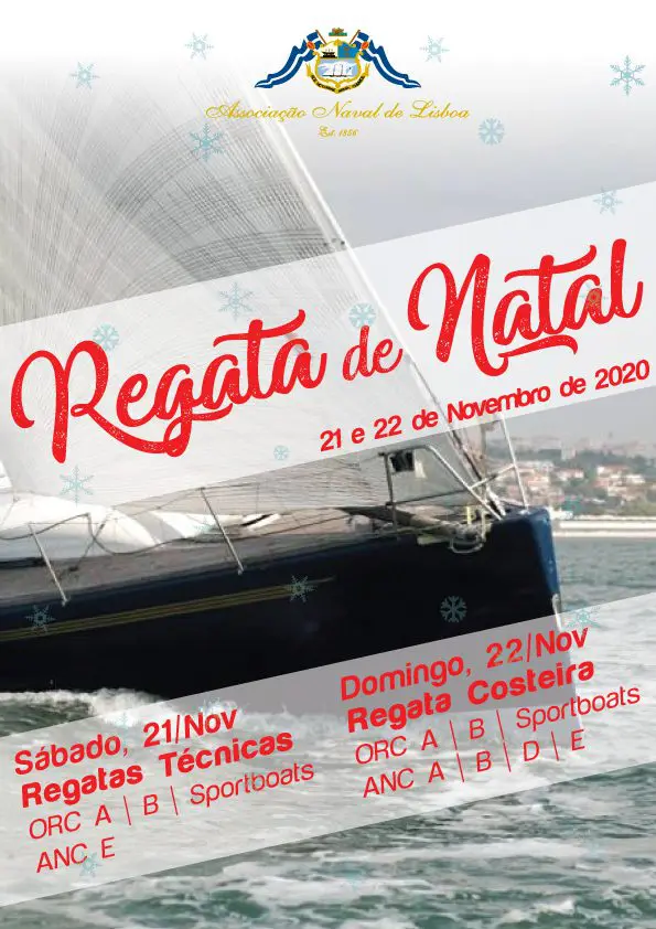 A Associação Naval de Lisboa (ANL) estabelece este Anúncio de Regata, para a realização da Regata de Natal 2020, para todos os barcos de Cruzeiro, na classe ORC e ANC, que será disputada nos dias 20 e 21 de novembro de 2020, no campo de regata do Rio Tejo / Baía de Cascais.